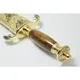 Клинок, изготовленный из высококачественной стали, обладает безупречной геометрии и долговечностью. Рукоять, выполненная из ценного дерева, приятно ощущается в руке, а ножны, покрытые золотом 10 микрон, добавляют изделию неповторимый блеск и элегантность.