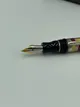 Корпус ручки выполнен из высококачественного целлулоида, украшенного элегантным серебряным узором. Перо изготовлено из прочного и долговечного серебра, обеспечивая плавное и приятное письмо.
